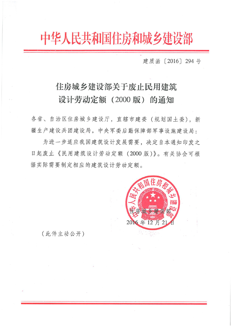 住房城鄉(xiāng)建設(shè)部關(guān)于廢止民用建筑設(shè)計勞動定額(2000版)的通知
