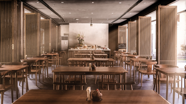 酒店內(nèi)溫馨舒適的開放空間與每棟土樓的內(nèi)部庭院相連接。這些庭院包含了餐廳、展覽空間、手工藝作坊、烹飪工作室、瑜伽工作室和兒童游樂場等一系列公共空間??腿藗兛梢栽诜块g內(nèi)用漳州特有的瓷器品嘗當(dāng)?shù)氐母涕俨?,或者在周圍的山間游玩探索,挖掘新鮮美味的竹筍。青普土樓文化行館的設(shè)計(jì)旨在打造一個(gè)既尊重傳統(tǒng)又啟發(fā)靈感的住宿環(huán)境。酒店提供種類豐富的餐飲,以及當(dāng)?shù)靥刂频钠【啤2蛷d采用新鮮的時(shí)令蔬菜和有機(jī)食材,由本土廚師帶來地道的客家美食。文化行館的持有者王功權(quán)長期致力于在酒店、金融等產(chǎn)業(yè)中推動(dòng)中國傳統(tǒng)文化的發(fā)展,并將酒店服務(wù)業(yè)的水平推向一個(gè)新的高度。