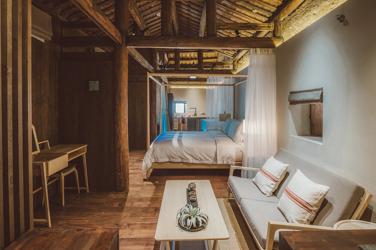 青普土樓文化行館位于福建漳州的文化遺產(chǎn)地,由5棟傳統(tǒng)的土樓建筑組成,擁有十分悠久的歷史,其中3棟是在晚清時(shí)期建成。設(shè)計(jì)團(tuán)隊(duì)將土樓古老的、以夯土墻和木結(jié)構(gòu)為主的風(fēng)格保留下來,維持了建筑的原始樣貌,同時(shí)在空間中置入了富有當(dāng)?shù)靥厣乃囆g(shù)裝飾,強(qiáng)調(diào)出青普特有的文化內(nèi)涵。行館共包含22間雙臥室套房,在內(nèi)部,綠色的板巖與溫暖的實(shí)木和冷杉木形成搭配,古典樣式的柱梁與現(xiàn)代空間結(jié)合在一起,凸顯出傳統(tǒng)工藝的美感。由梵幾(FNJI)設(shè)計(jì)的室內(nèi)家具將這種傳統(tǒng)工藝與現(xiàn)代的設(shè)計(jì)語言結(jié)合起來,更好地適應(yīng)了當(dāng)代中國人的生活方式。